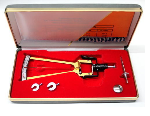 Schiotz tonometer by Microtrack Surgicals Price US$POA Supplier/s Microtrack Surgicals Supplier Code IAPB (MKT Schiotz Tonometer) Country of Origin India Request a quote Product Description Schiøtz tonometer is an indentation tonometer, used to measure the intraocular pressure (IOP) by measuring the depth produced on the surface of the cornea by a load of a known weight. The indentation of corneal surface is related to the IOP. Product Features The Schiotz Tonometer features a high-quality agate bearing, ensuring an extremely long service life and maintaining accurate and reliable measurements over time. Provides precise measurements on a scale ranging from 0 to 20 subdivisions and 0 to -1 subdivisions, allowing for accurate assessment of intraocular pressure. The red pointer on the Tonometer's scale ensures easy and precise reading of measurements, enhancing the efficiency and accuracy of eye examinations. All vital parts are made of stainless steel, ensuring durability and longevity. The remaining parts are chrome-plated, adding to the overall robustness and quality of the device The Tonometer comes complete in a blue deluxe case, providing secure storage and easy transportation, ensuring the safety and protection of the instrument. Share: